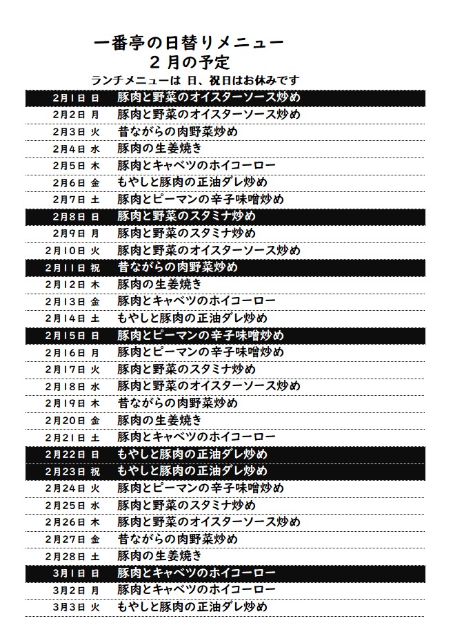 2026年1月24日 / 最終更新日時 : 2026年1月16日 itibantei 日替わりおかずカレンダー 2月の日替わりおかずカレンダーFacebookXBlueskyFacebookXBluesky