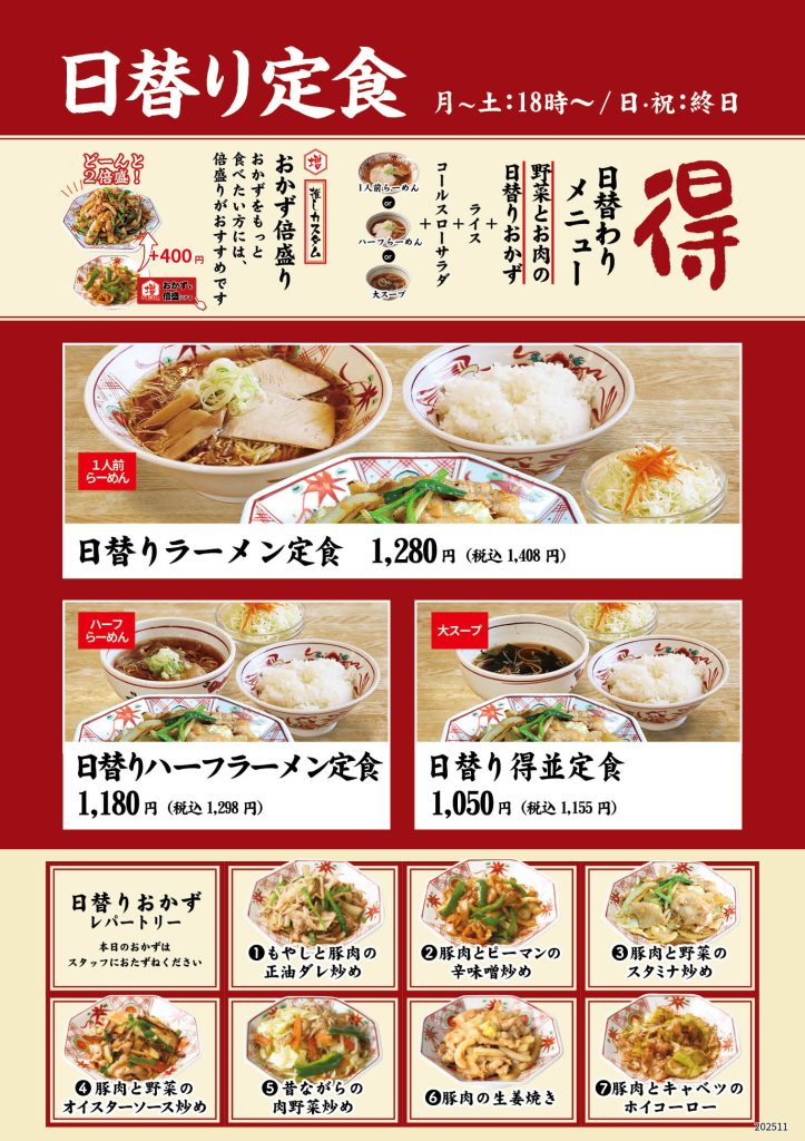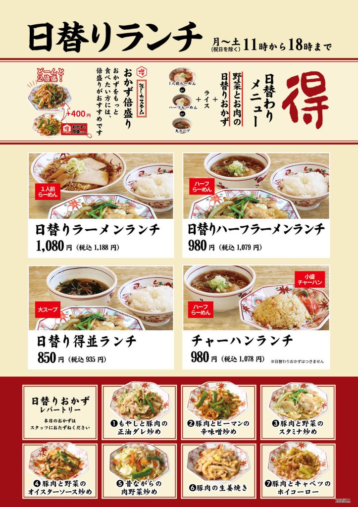 ※一番亭三島駅前店・餃子のゆがわら一番亭の2店舗はランチメニューを実施しておりません。